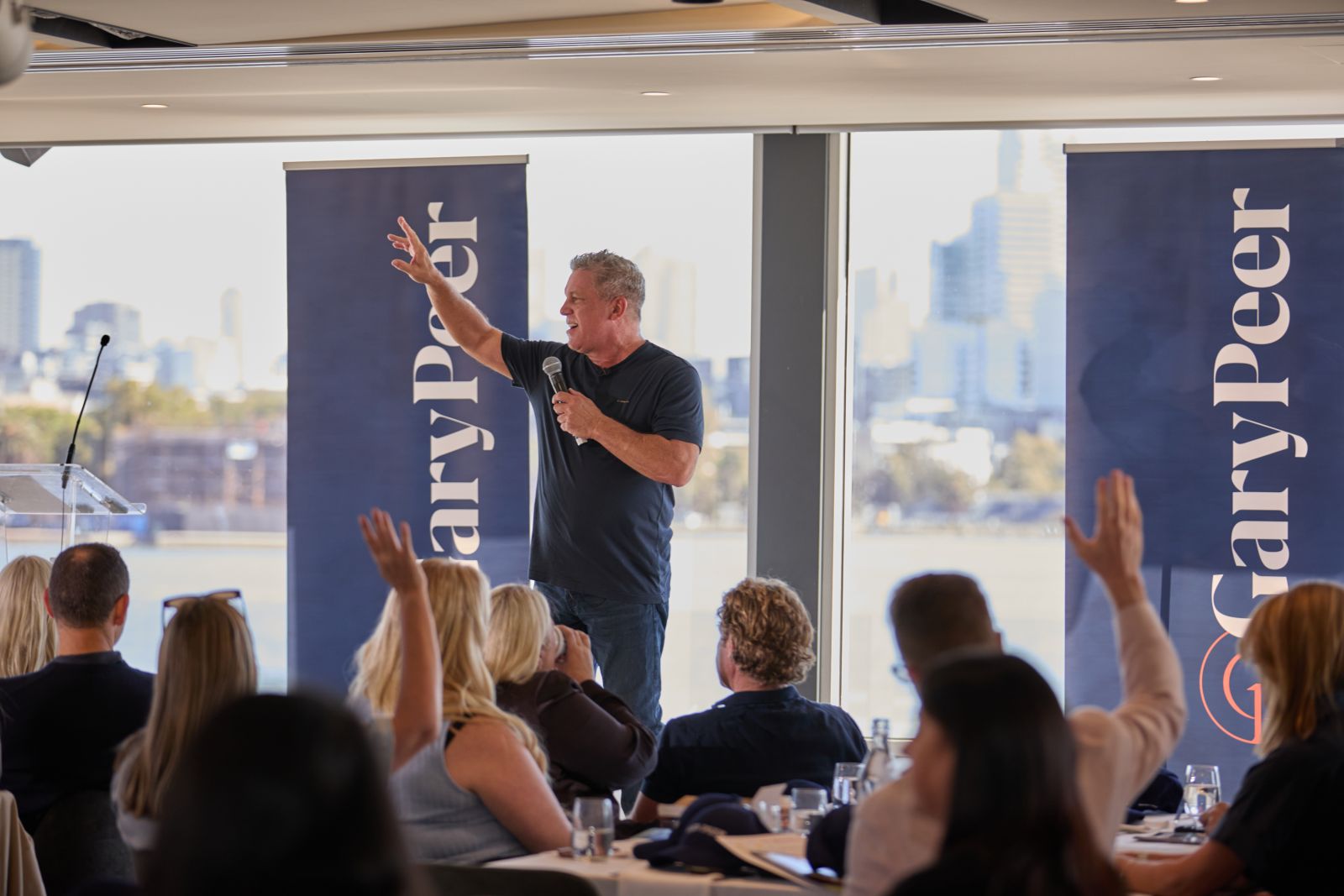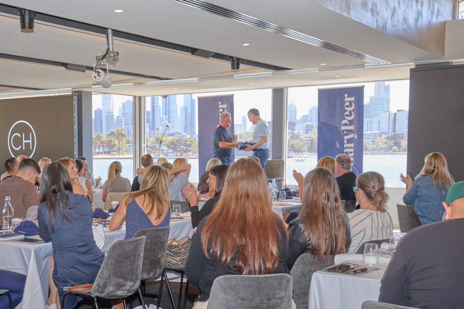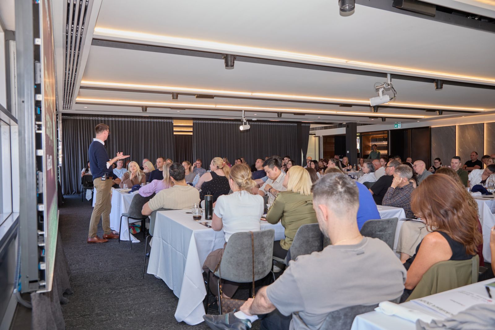 Out the front, the Gary Peer coffee vans were already working their magic. Inside, conversations flowed between people who don’t usually cross paths day to day – a deliberate move this year, with assigned seating designed to mix teams and offices.