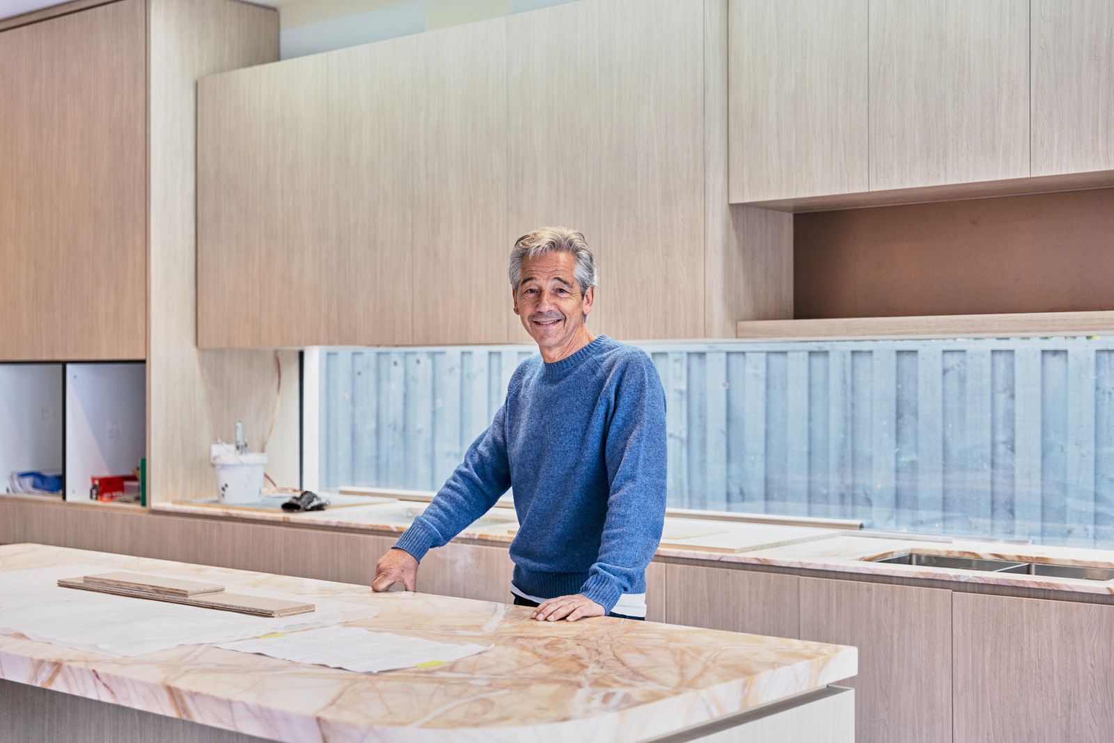 We’re sitting in the nearly finished living room of Richard Stiebel’s latest Caulfield North development. Sunset Dolomite runs along the kitchen island – the stone he personally flew to Sydney to inspect. The complementary cabinetry and wow-factor windows reflect a builder who never misses a detail. It’s no wonder Richard’s known as one of the best. And today, he’s sharing how he got here. One meticulous project – and one special, long-standing relationship – at a time.