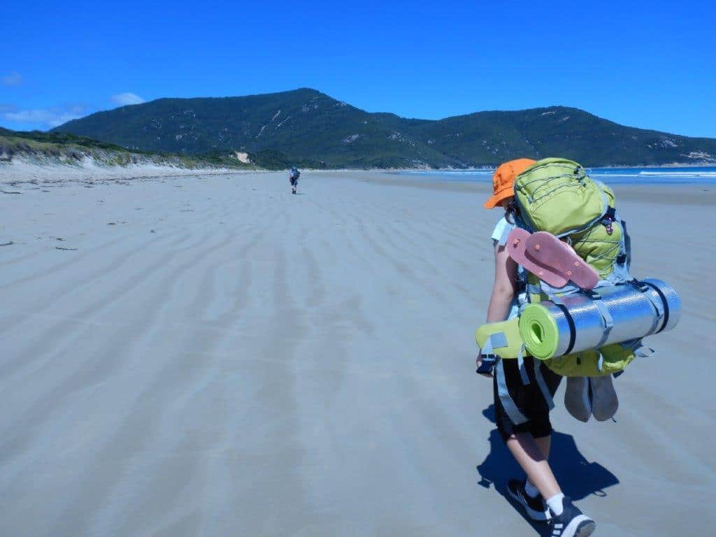 This hike-in bush campsite requires a little preparation. But at around 7km, it’s a manageable walk – and a great introduction to walk-in camping. The well-marked track from Tidal River passes through coastal scrub, a creek crossing and granite outcrops before opening onto a sweeping crescent of sand.